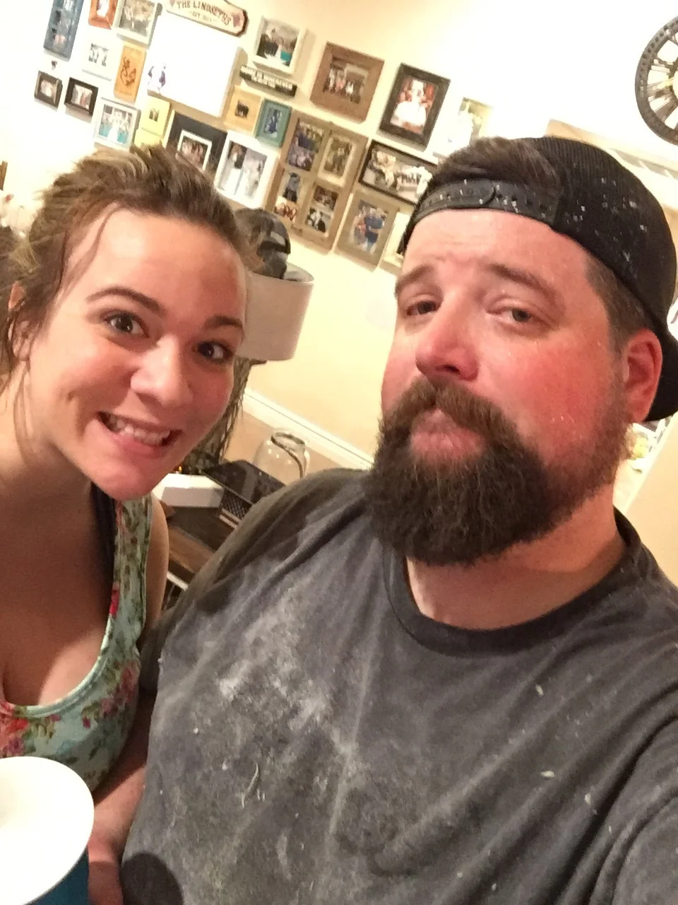 My Wife excited about the new lighting, my covered in spray in insulation from the attic...not so much.