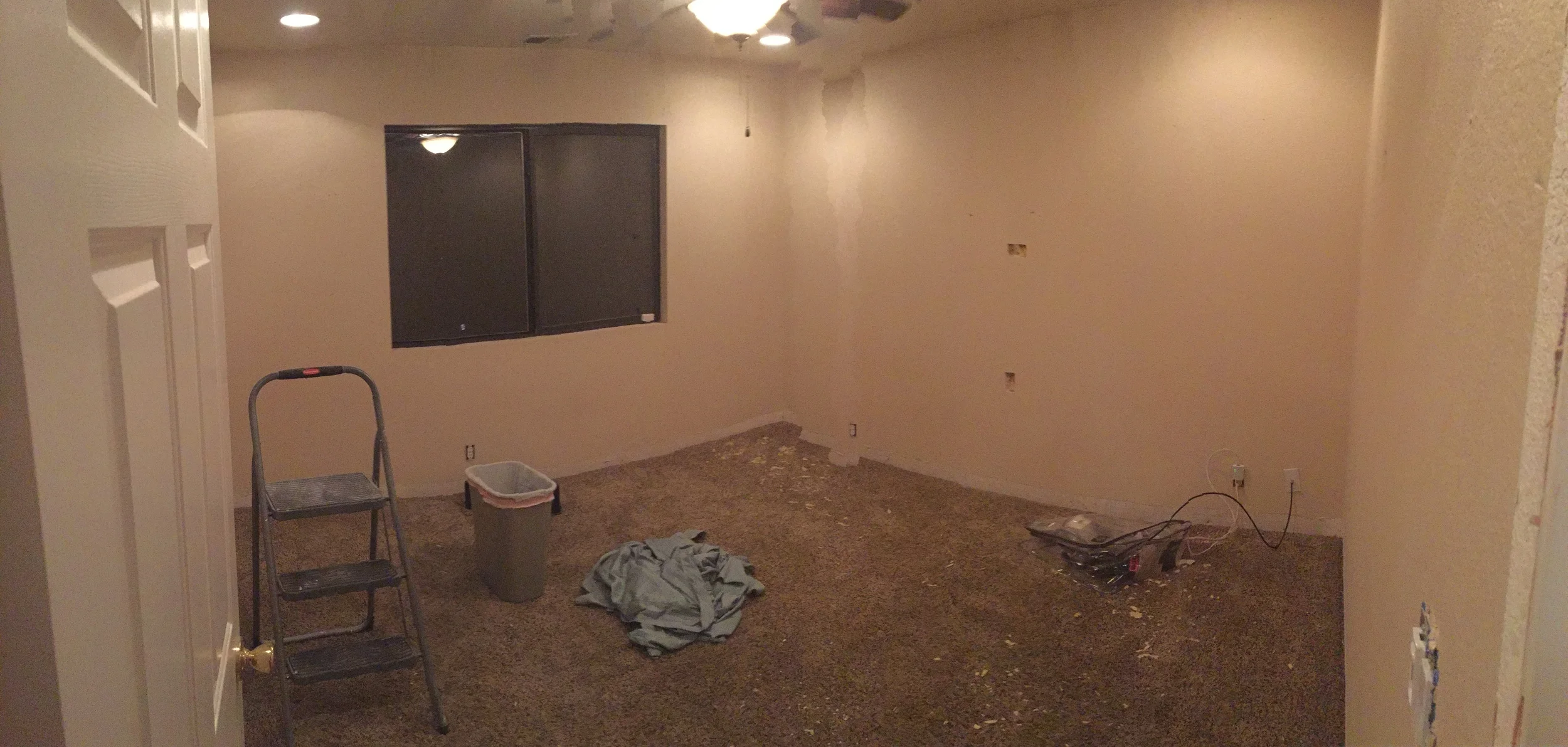 From there we painted and installed crown moulding, base boards, and changed out all of the recepticleas and switches to the new style decora ones finishing off the room.