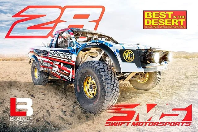 When my two buddies Danny Folkes and Jonathan Swift approached me for a wrap for the 2016 season needles to say I was excited to take it on. Being an avid off road enthusiast I was well aware of the history of the Swift motorsports team. Jonathan's father John Swift has won multiple off-road races and titles while also being part of the famous Rough Riders team. Jonathan has now taken over most of the driving duties in their new Racer Engineering Trophy Truck for the 2016 season and is already on track to do the same. Danny, who has been my good friend for many years, had taken over as the Crew Chief in 2015 and introduced me to the Jonathan who was kind enough to trust me in the refresh.